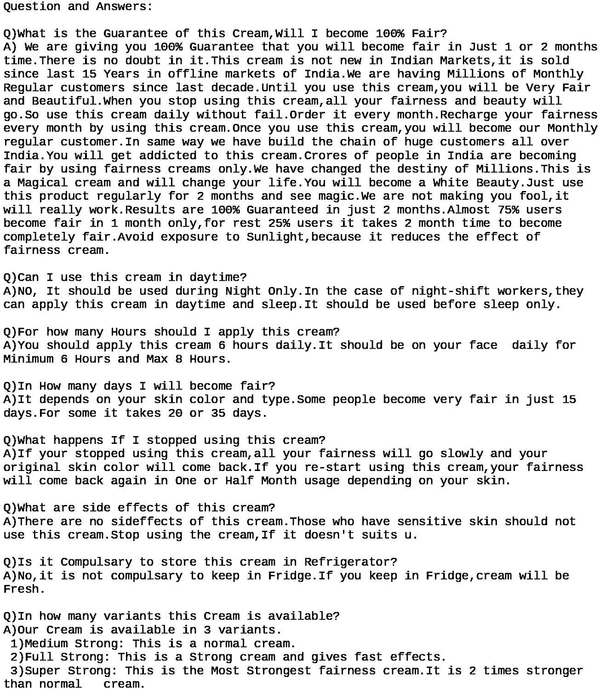 - No Sideffects,buy with confidence.100% Natural Homemade Fairness Cream. After applying cream, don't go in direct sunlight. Use sunscreen before going outside at daytime for longer time. You can apply this cream at daytime and nightime, but apply before sleeping only.